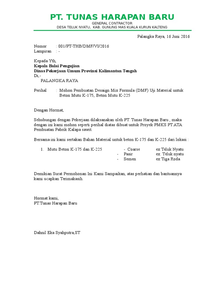 Contoh Surat Permohonan Coring Jalan Beton